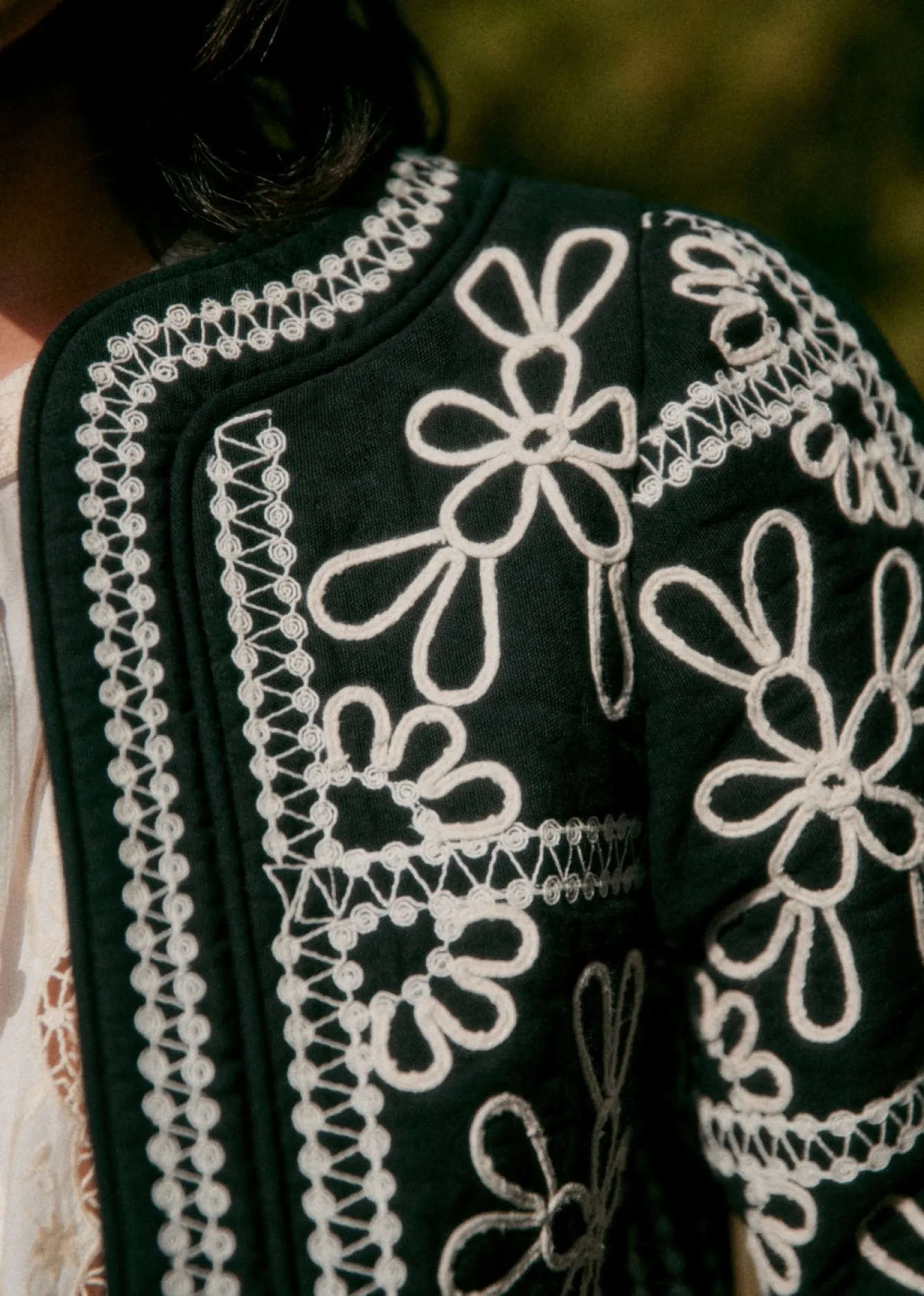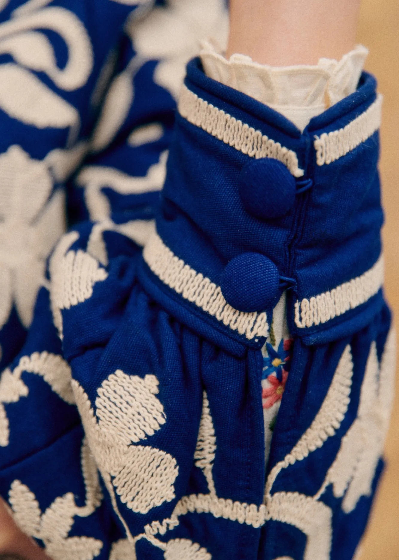 | Couleur | Fond Bleu Broderie Ecrue, Kaki / Écru, Noir Broderie Ecru |