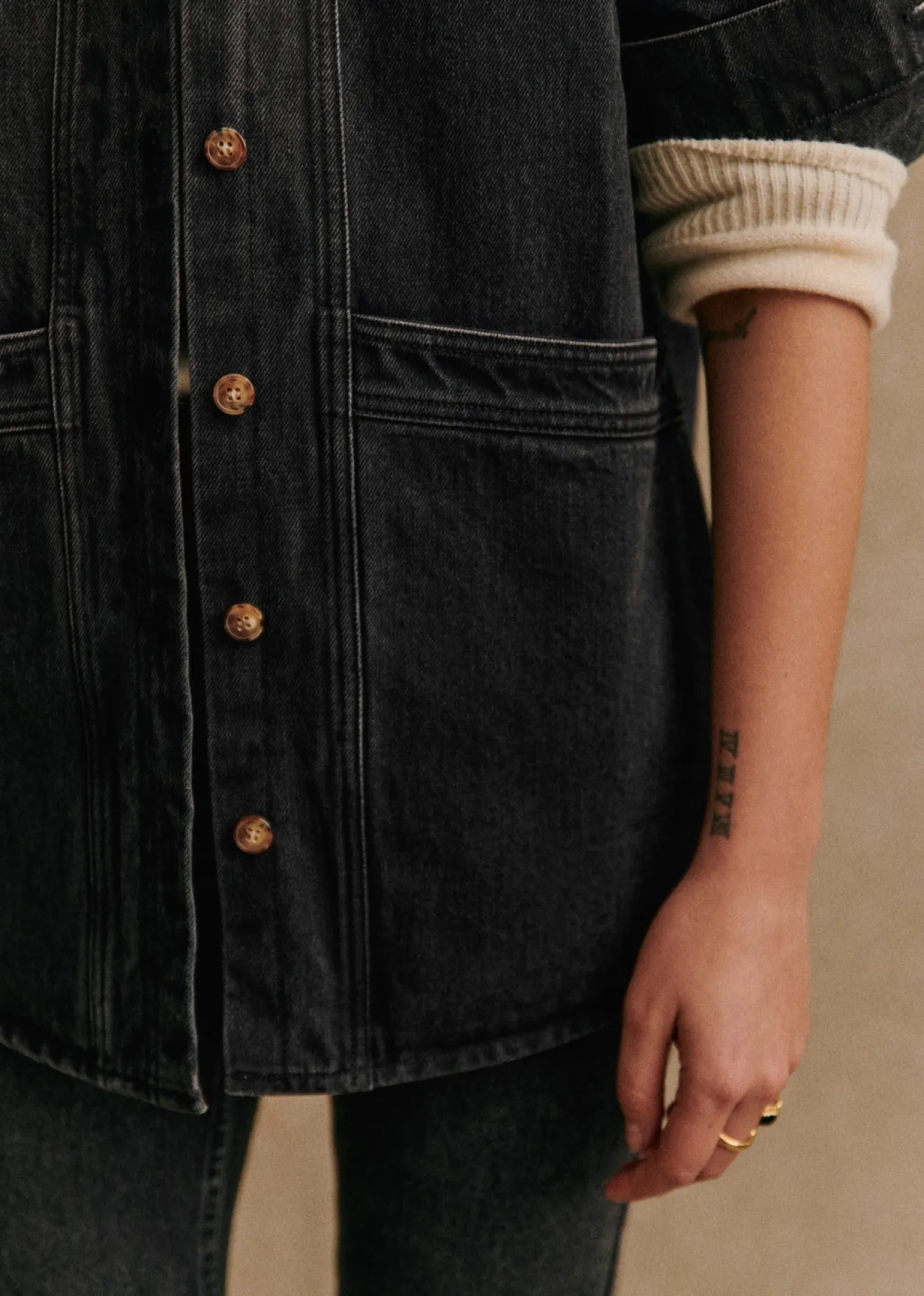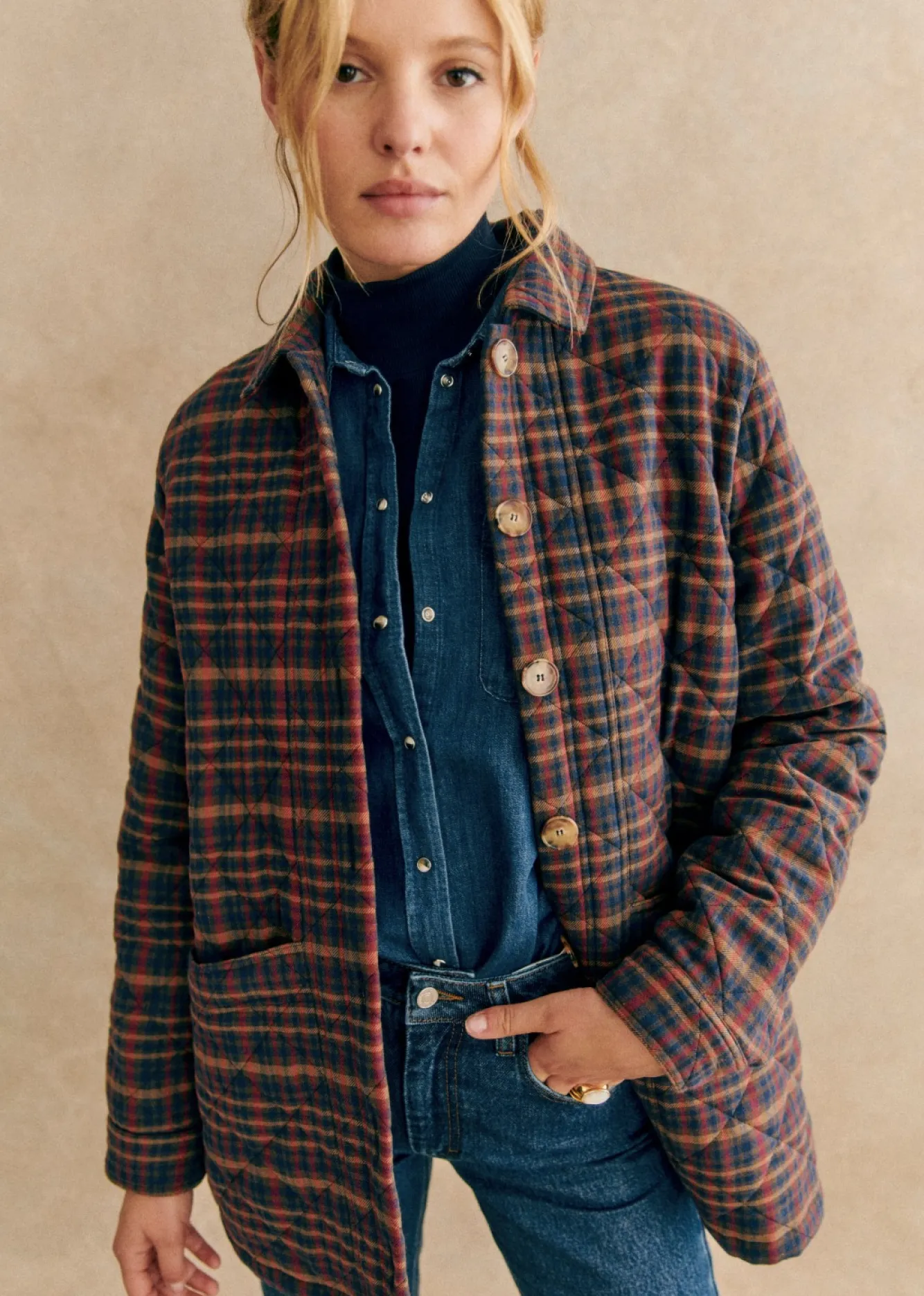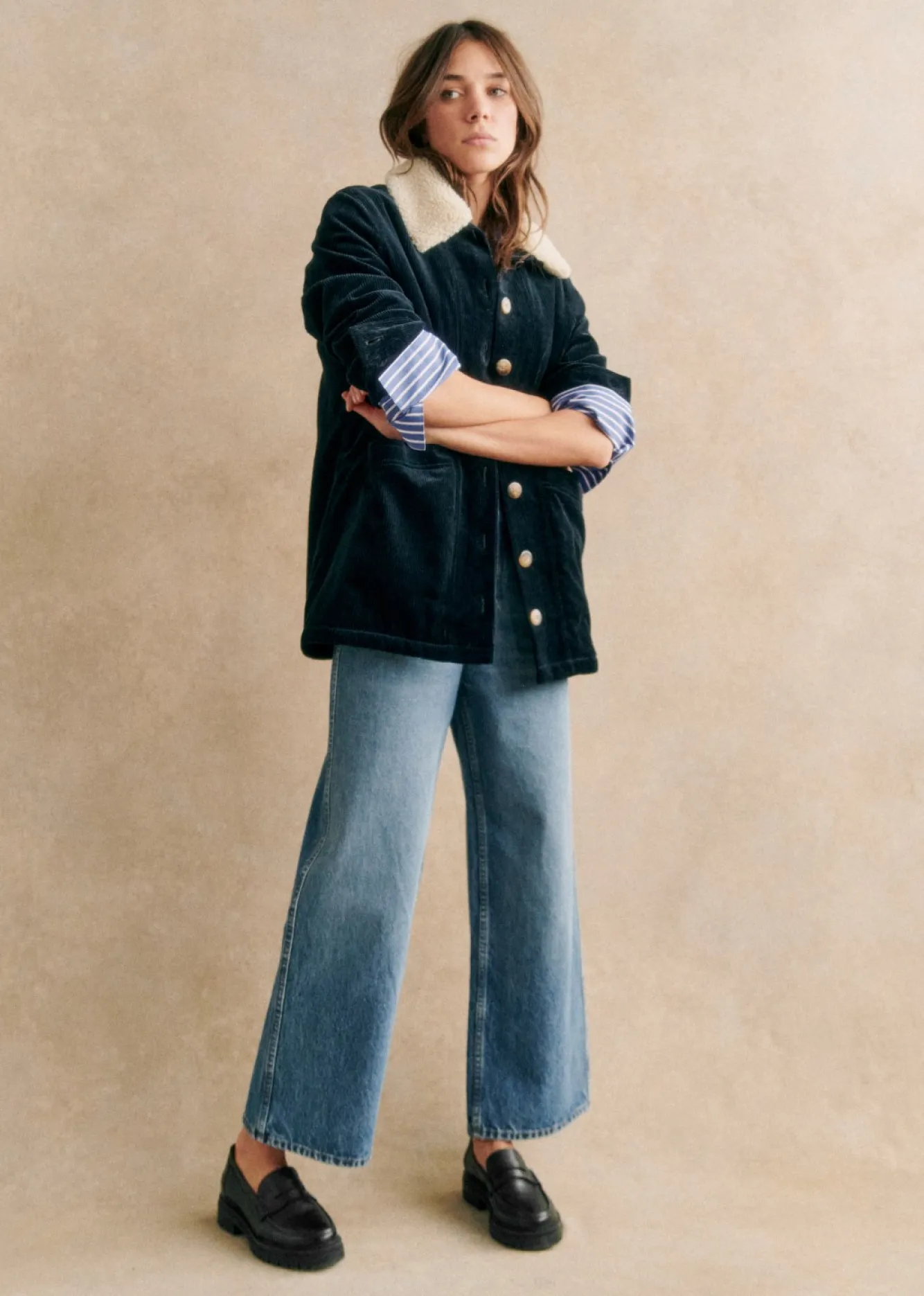 | Couleur | Bleu Denim, Camel Daim, Carreaux violet, Écru, Indigo, Indigo col bouclette, Kaki, Noir Délavé |